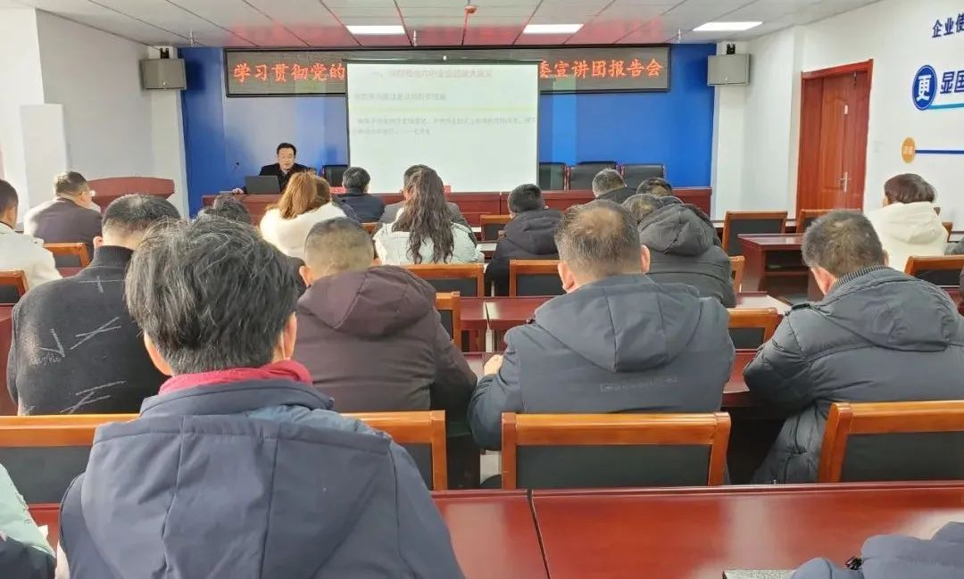 为深入学习贯彻党的十九届六中全会精神,提升广大党员干部的政治素养和思想觉悟,12月14日下午,学习贯彻党的十九届六中全会精神县委宣讲团报告会在太阳成集团tyc33455集团举办,县委宣讲团成员、县委宣传部副部长梁学刚作宣讲报告。县招商和园区发展中心及太阳成集团tyc33455集团党员干部80余人聆听了报告会。