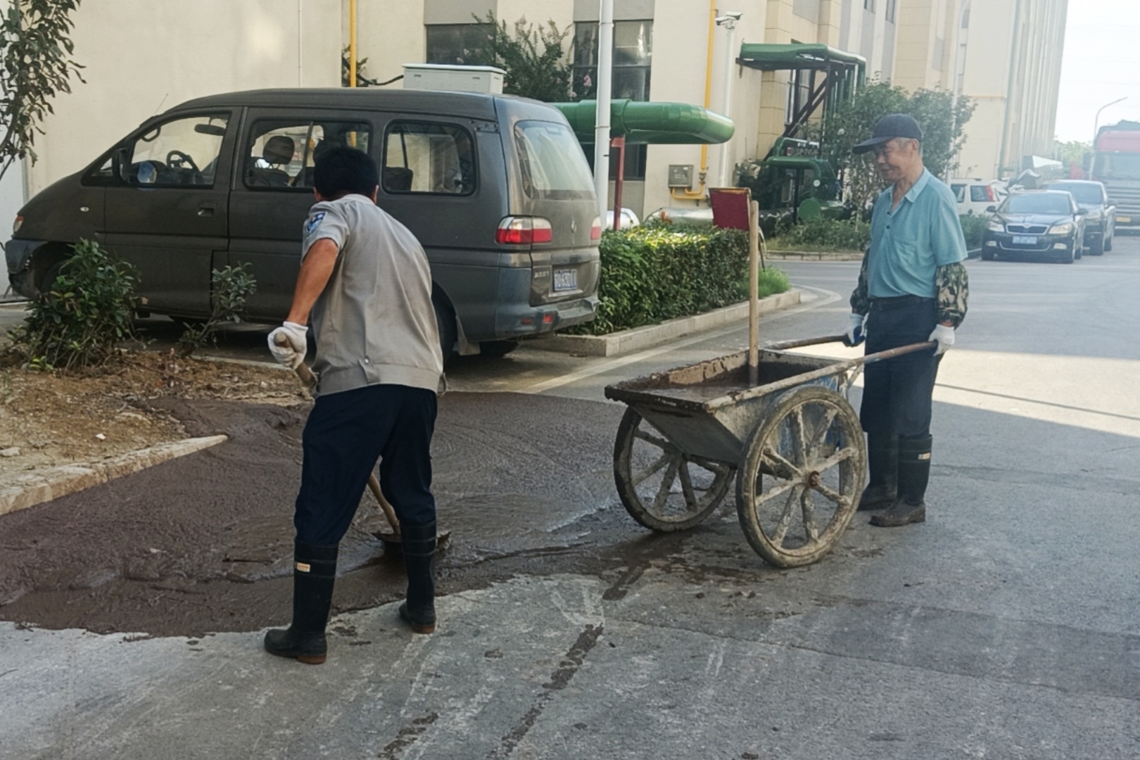 图丨园区物业人员正在对路面进行维护,为入园企业提供舒适的工作环境