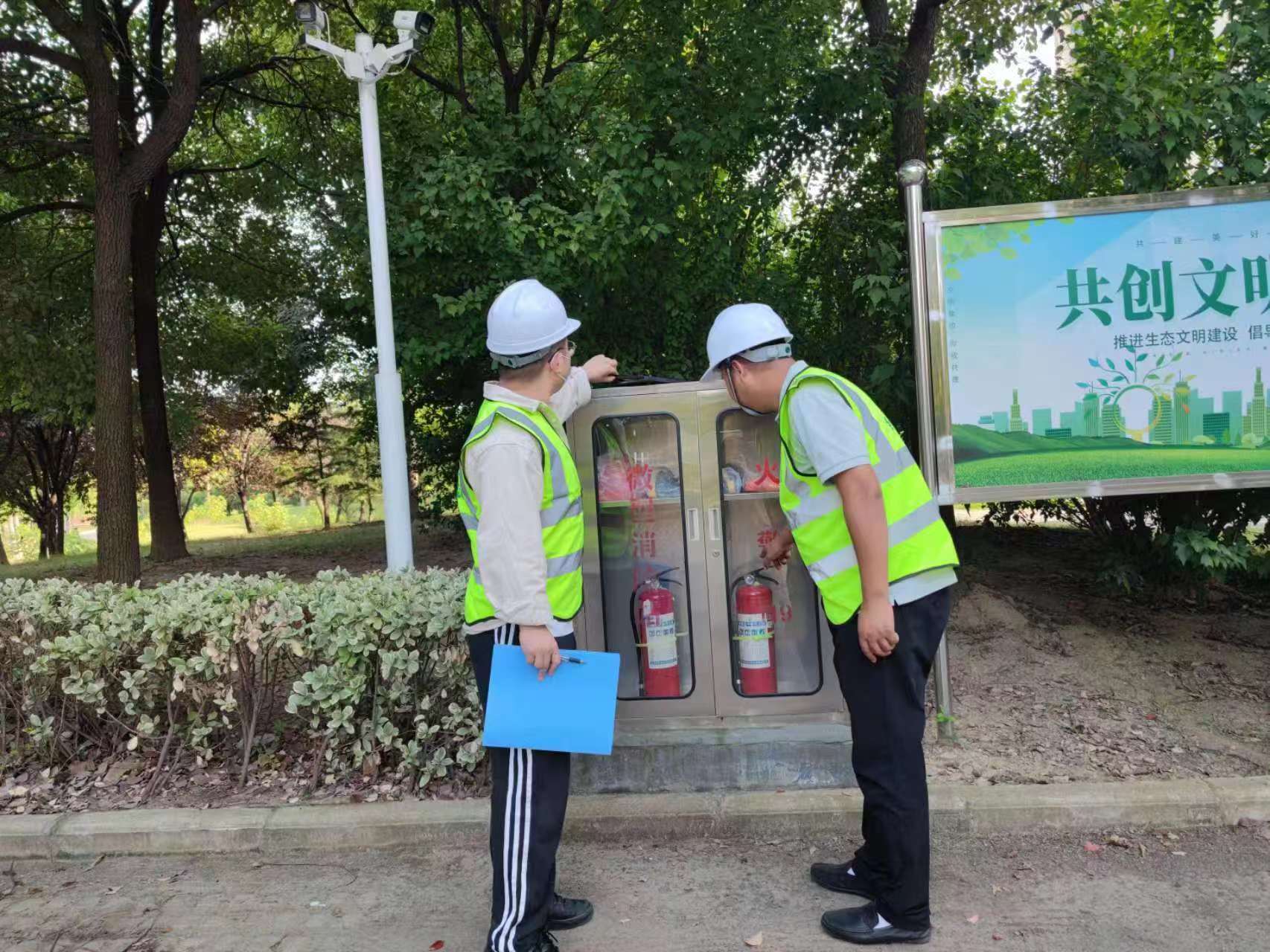 【工作人员对站点的消防设备进行检查】