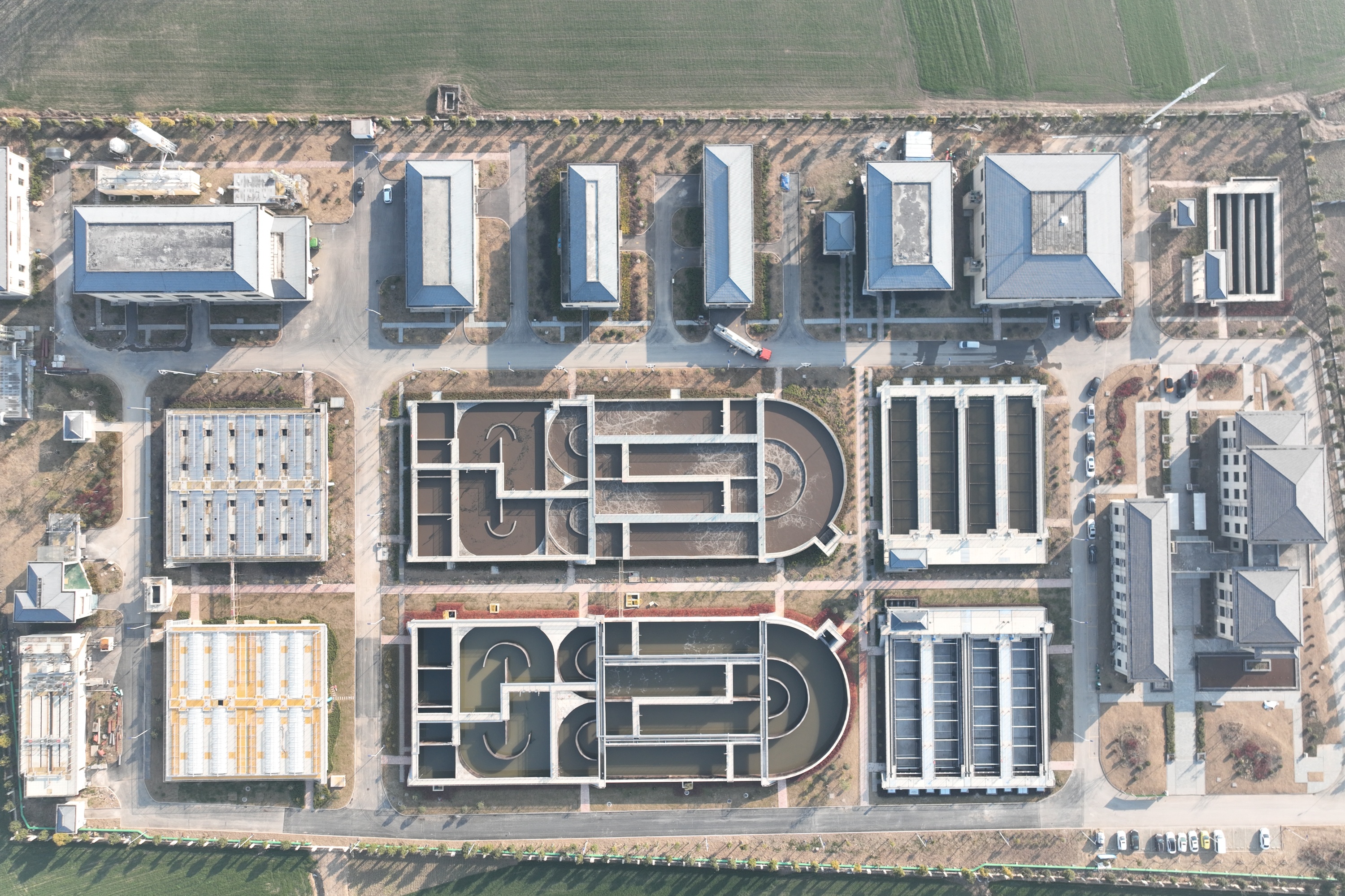 该工程位于五河县青年南路东侧,南环线北侧,占地面积达11000㎡。新建的水解酸化池池体体积9116.96m³、A²/O氧化沟池体体积27349.9m³、二沉池池体体积8210.13m³,为污水处理提供了坚实的硬件基础。同时,配套建设了污泥泵房30㎡、仪表间19.6㎡,印染产业园配套架空管网约4km,尾水排放管网约5.5km,完善污水收集管网系统,提高污水收集效能,改善五河县经济开发区水环境质量,此次工程新增污水处理规模2万m³/d,大大提升了五河县污水处理能力。