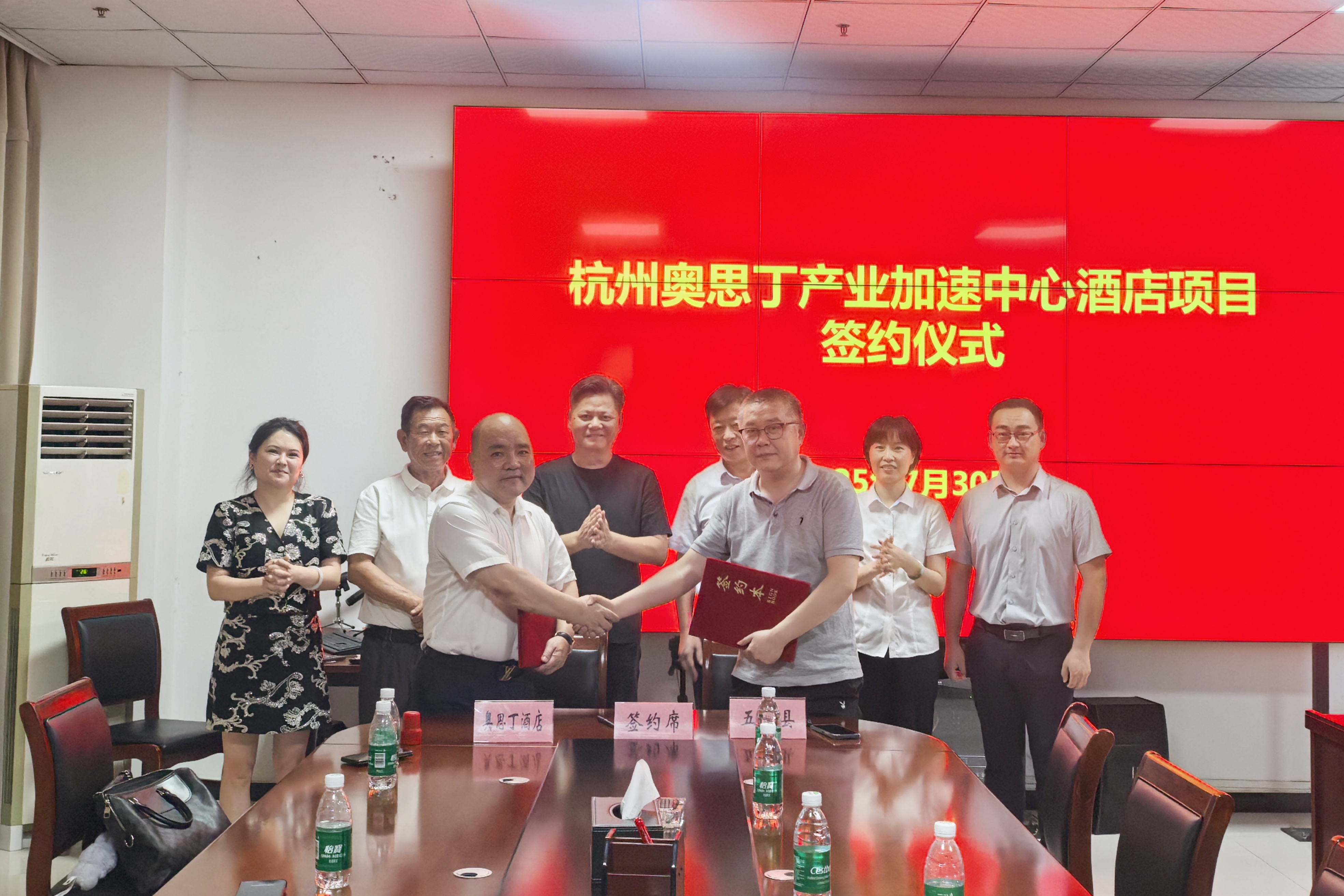 7月30日,杭州奥思丁产业加速中心酒店项目签约仪式在五河县招商和园区发展中心二楼成功举行。杭州奥思丁酒店管理有限公司、五河县招商和园区发展中心、五河农商银行、安徽省虹城生态文旅开发有限公司(以下简称“虹城文旅公司”)等相关领导出席见证签约仪式。