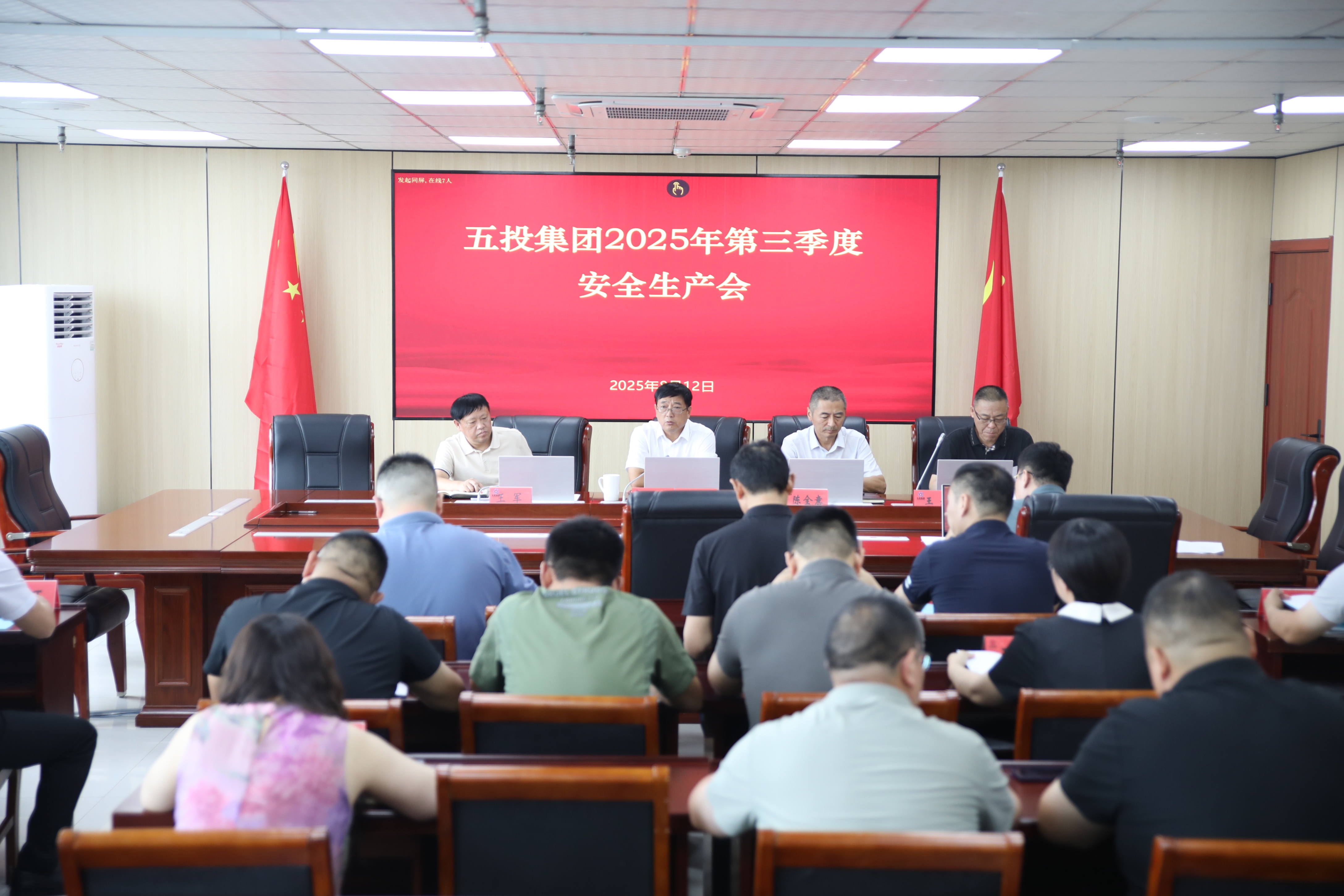 8月12日,太阳成集团tyc33455集团召开第三季度安全生产工作会议,深入学习贯彻习近平总书记关于防汛救灾工作重要指示精神,总结上半年安全生产工作成效,部署下一阶段重点任务。集团领导班子、各职能中心负责人及子公司相关负责人参加会议。