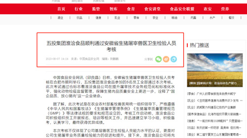 《中国食品安全网》关注:淮浍食品顺利通过安徽省生猪屠宰兽医卫生检验人员考核